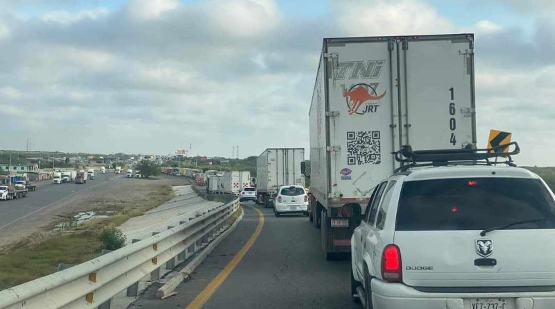 Otra vez las filas de carga hacia Nuevo Laredo, esta vez debido a un sorpresivo operativo de agentes de la Fiscalía General de la República (FGR), le cual fue ubicado de sur a norte casi cuatro kilómetros antes de llegar a la antigua Garita del Kilómetro 26.