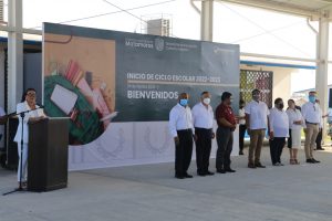 Con la representación del alcalde Mario Alberto López Hernández, este lunes a temprana hora, la secretaria de Educación, Cultura y Deporte, Genoveva Hi González activó el ciclo escolar 2022-2023 en la escuela primaria “Rodolfo Torre Cantú”, ubicada en el Fraccionamiento Palmares.