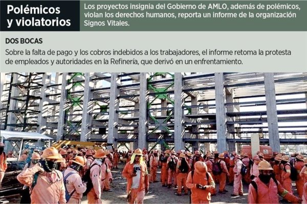 En un balance efectuado a mitad de sexenio sobre los derechos humanos en esta administración, la organización analizó las condiciones en las que se trabaja en obras del Tren Maya, la Refinería de Dos Bocas, el Aeropuerto Internacional Felipe Ángeles y el Corredor Transístmico.