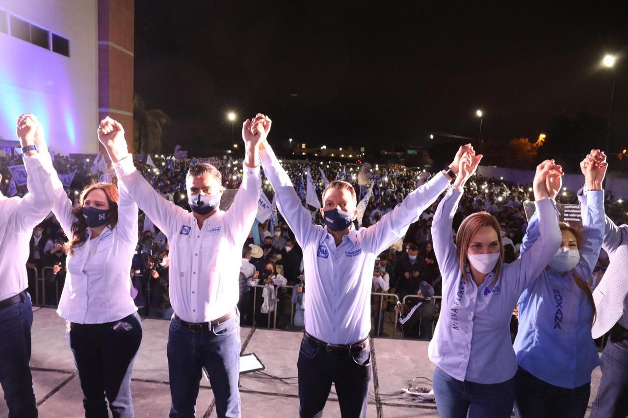 ALLÁ EN NUEVO Laredo, los también abanderados del PAN a la Presidencia Municipal Yahleel Abdala Carmona, así como los abanderados a Diputados locales Enrique Rivas Cuéllar, Imelda San Miguel, Félix “Moyo” García y el abanderado azul a Diputado Federal Salvador Rosas, todos como una sola familia, “arrancaron unidos sus campañas” para dar la gran batalla electoral el 6 de junio próximo, siendo recibidos con gran júbilo por parte de la gente, pues cada uno de los prospectos políticos Neolaredenses, “son garantía de triunfo”, porque son personajes del escenario político que, “comulgan con la verdad y no con el engaño” y además tienen palabra, para seguir, cumpliéndole a las familias de aquel puerto fronterizo.