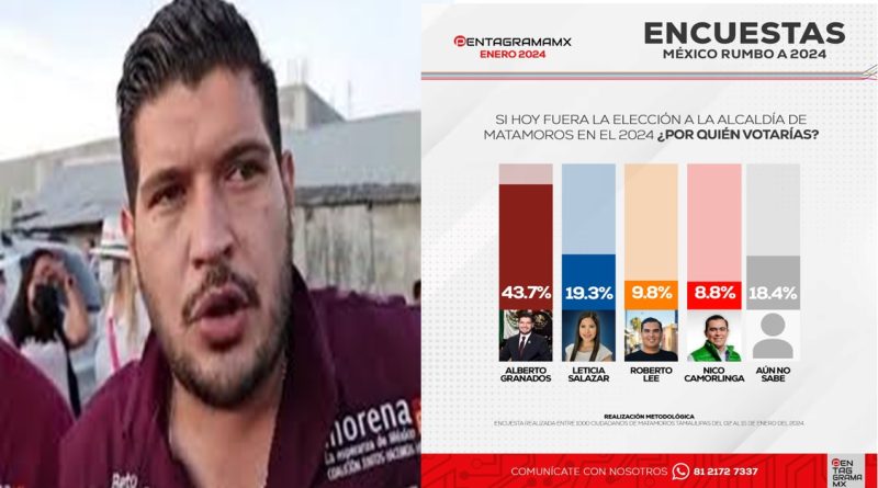 Matamoros Tamaulipas.-Ante las próximas elecciones en la ciudad fronteriza de Tamaulipas, el diputado local , Alberto Granados ya se posiciona como el más rentable y el más favorecido, así lo confirman las casas encuestadoras como Pentagrama MX y Cartograma MX.
