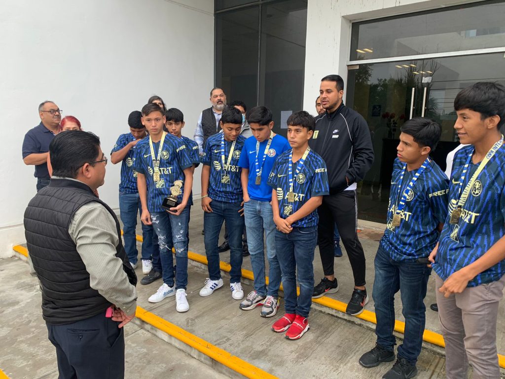 Al informarle sobre su reciente participación en la ciudad de México, donde se coronaron Campeones Nacionales de fútbol soccer en la categoría 06-07, el titular del Crede Matamoros se comprometió en donarles equipo deportivo para sus entrenamientos, así como gestionar ante el Centro de Alto Rendimiento un espacio para que tengan un lugar digno donde seguir con sus entrenamientos, ya que carecen de un espacio fijo donde hacerlo
