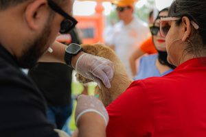 Cientos de familias acudieron con sus mascotas para aplicar la vacuna antirrábica durante la campaña naranja.