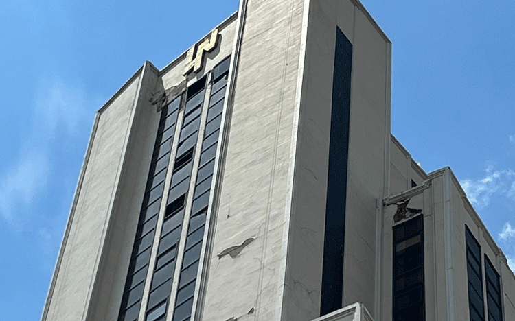 - Edificio de la Lotería Nacional, Av. Paseo de la Reforma No. 1, Tabacalera, Cuauhtémoc: fisuras entre muros divisorios y estructura, reparaciones puntuales