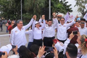 Militantes, simpatizantes y candidatos de la coalición MORENA, PT Y PVEM se reunieron para escuchar el mensaje de la candidata en el cual se resaltó que busca seguir fortaleciendo la cuarta transformación, preocupada principalmente por el abastecimiento del agua.