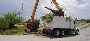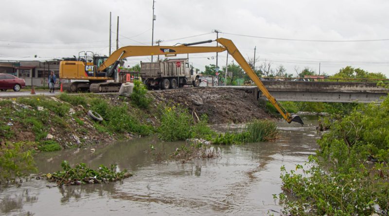 Los trabajos que se realizan, algunos de ellos, en coordinación con la Junta de Aguas y Drenaje de Matamoros son principalmente el retiro de tapones formados por basura y diversos desechos que obstruyen el libre flujo del agua.
