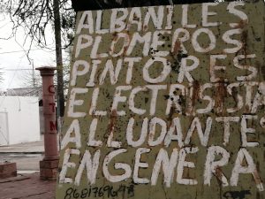 Requieren trabajo, un grupo de trabajadores desempleados pero expertos en albañilería, plomería, pintores, electricistas y ayudantes, ubicados en calle Diagonal Cuauhtémoc o al teléfono 8683013010, están ubicados a lado de las oficinas del PRI.