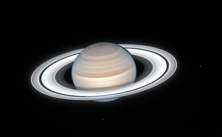 Asimismo, la NASA explica que dos de las lunas heladas de Saturno se visualizan claramente: Mimas a la derecha y Enceladus en la parte inferior.