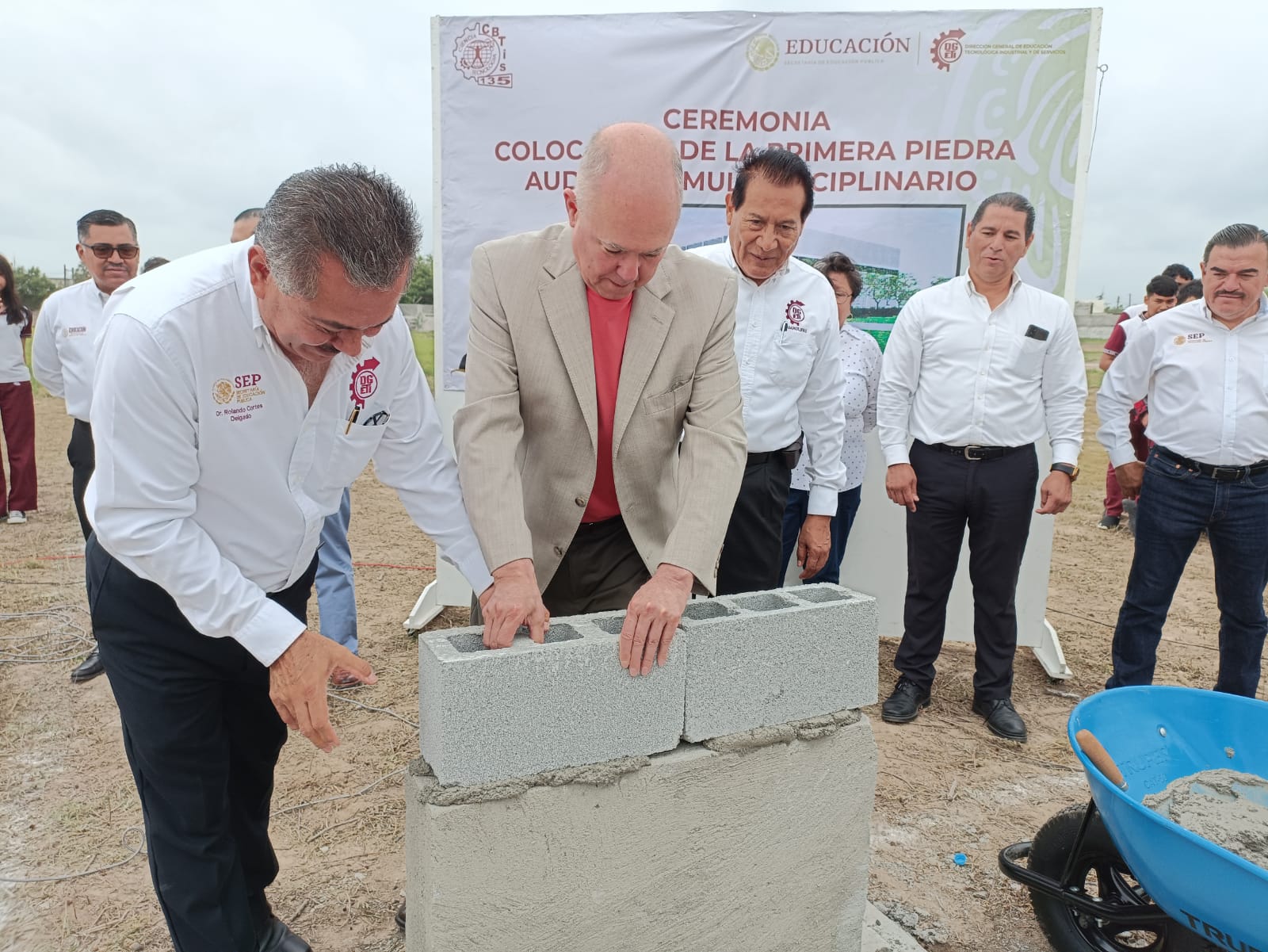 Acompañado del Comisionado Responsable de la Dgeti en Tamaulipas, maestro Olegario Muñiz Cura, docentes, alumnos y padres de familia, el director del Cbtis 135 en Matamoros, profesor Rolando Cortés Delgado, instaló la primera piedra de lo que será el gimnasio auditorio de éste plantel, mismo que tendrá una inversión económica de doce millones de pesos.
