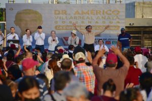 Reynosa, Tam.- Desde la colonia Villa Esmeralda, conocida como el corazón del voto masivo que da y define los triunfos de los candidatos, el doctor Américo Villarreal Anaya, dijo que en Tamaulipas hay plazas y canchas llenas de voluntades que quieren que llegue la Cuarta Transformación.