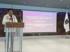 Ante la presencia de alumnos, padres de familia, personal administrativo y docente, el director del Cbtis 135, maestro Rolando Cortés Delgado, ofreció su Informe de Actividades y Rendición de Cuentas 2023 – 2024, acto que se desarrolló en la sala audiovisual de éste centro educativo.