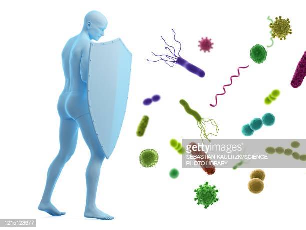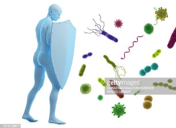 En general, el sistema inmune está dividido en dos subsistemas, ambos vitales para proteger al cuerpo de organismos invasores: el sistema inmune innato y el sistema inmune adaptativo. El primero, es heredado genéticamente por los padres y se encuentra activo desde el nacimiento,[i] y aunque no es tan poderoso como otras partes del sistema general, es la primera línea de defensa, el cual ataca rápidamente a todas las sustancias extrañas, llamadas antígenos. El sistema inmune innato está conformado por barreras inmunológicas físicas y químicas, como el reflejo de toser, la piel, las membranas mucosas o el ácido gástrico.[ii], [iii]Immune system, conceptual computer illustration.