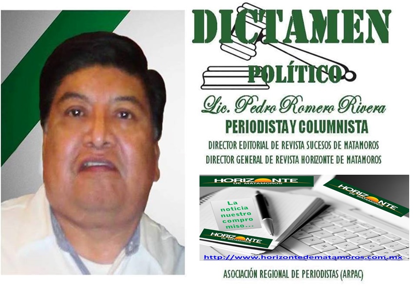 DESDE AQUÍ ENVIARLE UN SALUDO A TODOS los candidatos que me han invitado a sus eventos y con gusto asistimos, no todos hay muchos que como decía en una entrevista a una de las contendientes ciertos partidos tienden a un distanciamiento entre los medios de comunicación y a veces esos en los que ellos no creen cambian un panorama de la realidad, por ello creo que como personas sabedores que la imagen del aspirante influye principalmente en su carisma, sencillez y atención a todos las personas, no nada más seleccionar a algunos, creo que todos tienen o tenemos  los mismos derechos y apoyar por igual, no a unos sí y a otros, porque en algún momento señaló algo que no agradó precisamente la democracia es tener libertad de decir las cosas que están mal para poderlas solucionar… Y bueno como el tiempo se acabó aquí le dejamos y nos vemos la próxima semana en Dictamen Político, para cualquier aclaración mi correo: romero3060@yahoo.com.mx y puede visitar nuestro Portal de Noticias en www.horizontedematamoros.com.mx hasta la próxima…