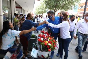 Reynosa, Tamp., a 17 de mayo del 2021.- El candidato del PAN a la Presidencia Municipal, Jesús Ma. Moreno, Chuma, visitó esta mañana una de las calles más tradicionales en la historia de Reynosa, la peatonal Hidalgo, en donde tuvo la oportunidad de compartir sus propuestas con el comercio formal e informal, uno de los sectores más afectados por la pandemia del Covid.