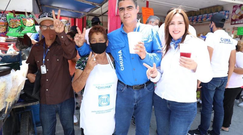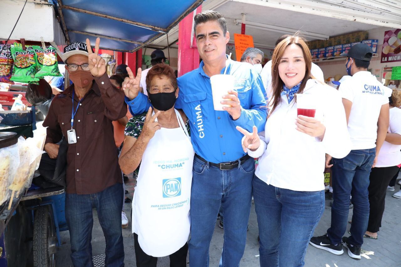 Acompañado de su esposa Maribel, Chuma escuchó las peticiones que tanto vendedores ambulantes y establecidos, así como transeúntes le plantearon para lograr la recuperación que tanto han esperado.