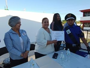 Por tal motivo la dirección de la Escuela Secundaria General número 10 a cargo de la maestra Mirthala Samaniego Bernal y supervisora de la Zona Escolar número 10 de secundarias generales, maestra Gabriela Moreno Hernández, hicieron entrega de reconocimientos a cada uno de los integrantes de la banda de guerra “Lince Azteca”.