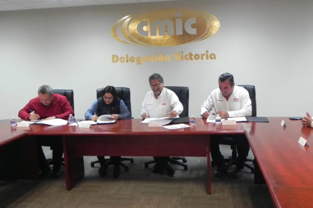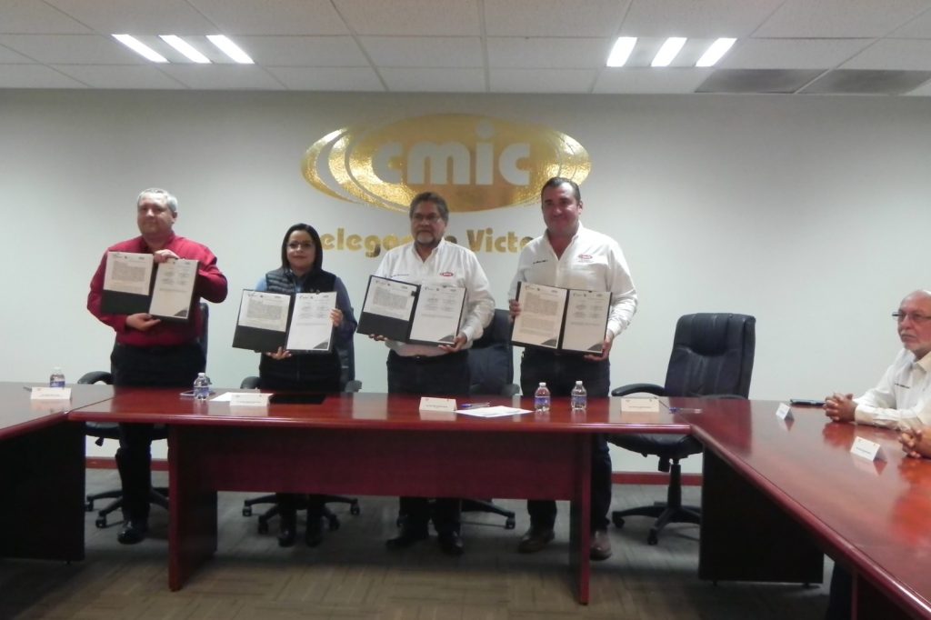 Ciudad Victoria, Tam.- El presidente de la Delegación Victoria de la Cámara Mexicana de la Industria de la Construcción –CMIC–, ingeniero Jorge Adán Contreras Galván, firmó un convenio de colaboración con la Secretaría de Bienestar Social del Gobierno del Estado de Tamaulipas, a cargo de la licenciada Verónica Adriana Aguirre de los Santos.