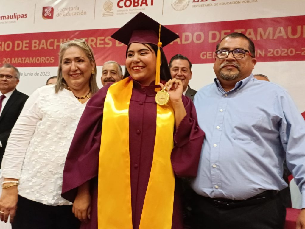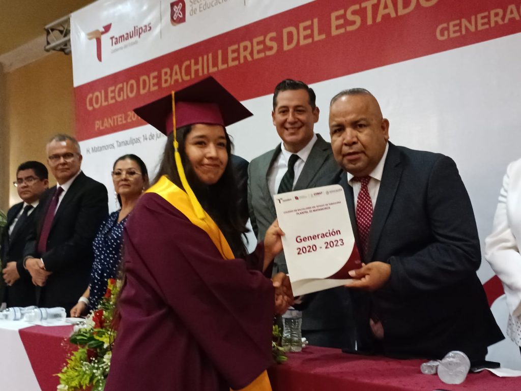 Con la entrega de diplomas y medallas a los estudiantes de excelencia de la generación 2020 – 2023, fue como se llevó al cabo la ceremonia de graduación del Colegio de Bachilleres de Tamaulipas (Cobat) plantel número 20 de Matamoros, generación que fue apadrinada por el Delegado Municipal de la Secretaría de Bienestar Social de Tamaulipas, Rafael Salas González.