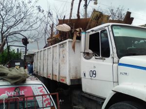 Esta institución educativa que está frente del tianguis de está colonia, se pudo apreciar unas personas que estaban arrojando la basura a un camión de redil.