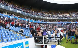 Por otro lado, la cabina del VAR fue vandalizada por la gente que provocó los disturbios, en tanto que una persona resultó herida y necesitó atención médica.