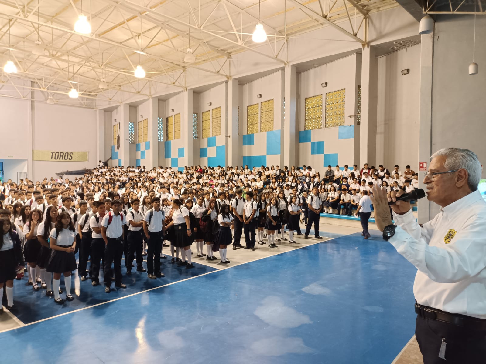 Fue en el gimnasio – auditorio, dónde el director Hernández Contreras junto con su personal, ofrecieron las palabras de bienvenida a todos los estudiantes.