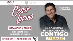 Esta mañana a través de una rueda de prensa, el Sistema DIF Matamoros compartió los pormenores de la conferencia “Por el Placer de Vivir Mi Reencuentro Contigo” del Dr. César Lozano, quien estará en esta ciudad como parte de su nueva gira por Latinoamérica. La ponencia se llevará a cabo en el Teatro de la Reforma el jueves 04 de agosto en dos funciones, 06:00 y 08:30 pm.