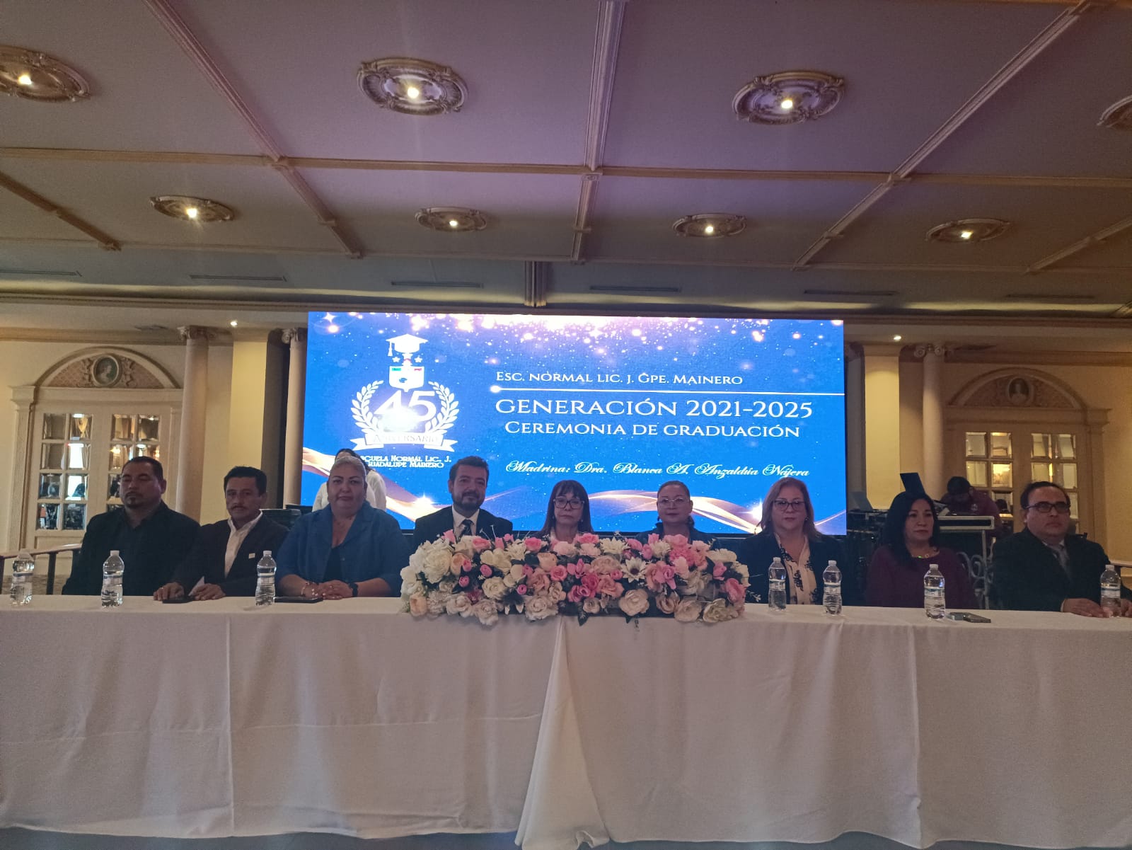 Con la entrega de reconocimientos y medallas a los alumnos más destacados de la generación 2021 – 2025, fue como se llevo a cabo la ceremonia de graduación de los estudiantes de la Escuela Normal “Lic. J. Guadalupe Mainero” en Matamoros, generación que fue apadrinada por la Diputada Dra. Blanca A. Anzaldúa Nájera.