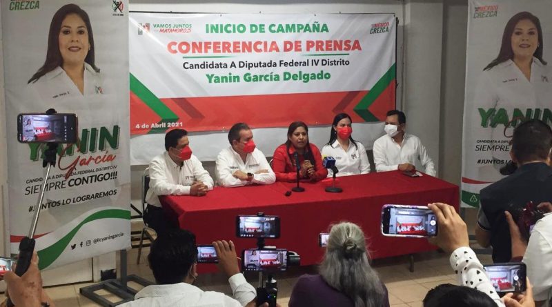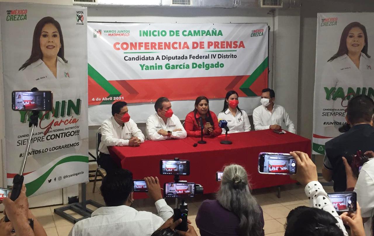 Entre aplausos, porras y hasta pasos de baile la candidata del PRI a la diputación federal por el IV distrito, Yanin García Delgado dio su arranque de campaña este domingo 4 de abril en la explanada del edificio del tricolor: momentos antes se reunió con los representantes de los medios de comunicación de esta ciudad, en donde destacó que su participación no obedece a un capricho personal “sino a la necesidad que tenemos los mexicanos para tener a verdaderos representantes del pueblo en el Congreso de la Unión”.