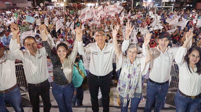 REYNOSA, Tam.-Al ritmo de la Banda “La Elegida”, Reynosa le dio la bienvenida al doctor Américo Villarreal Anaya en la cuarta Plaza de la colonia San Valentín, donde se reunieron unas tres mil personas para apoyar el proyecto que encabeza rumbo a la gubernatura.