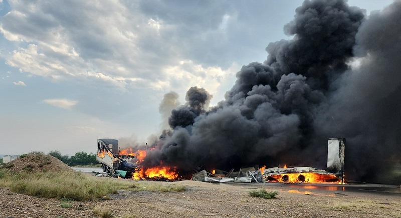 Tras el fuerte impacto, una de las pesadas unidades que participaron en la colisión, ardió en llamas, lo que bloqueó el tránsito por el lado derecho del camino, por lo que de inmediato se presentaron al lugar elementos de auxilio vial de la propia Concesionaria para apoyar en las labores de bandereo, así como una unidad de servicios médicos con personal para apoyar.