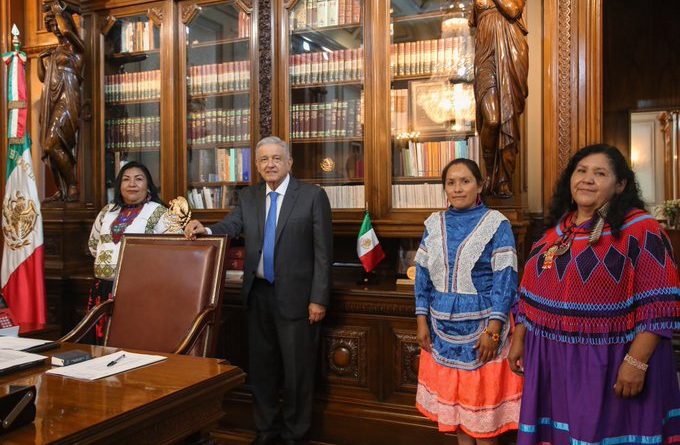 «Me reuní con Claudia Morales, wixárika de Jalisco; Olga Santillán, tepehuana del sur de Durango y Mónica González, del pueblo Cucapá de Baja California», dijo a través de su cuenta de Twitter.