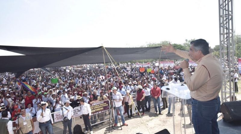 HIDALGO, Tam.- Fue el campo deportivo del ejido “La Rosalva” donde más de 25 mil almas se reunieron para alzar la voz, reclamar justicia y apoyar con todo, al doctor Américo Villarreal Anaya.