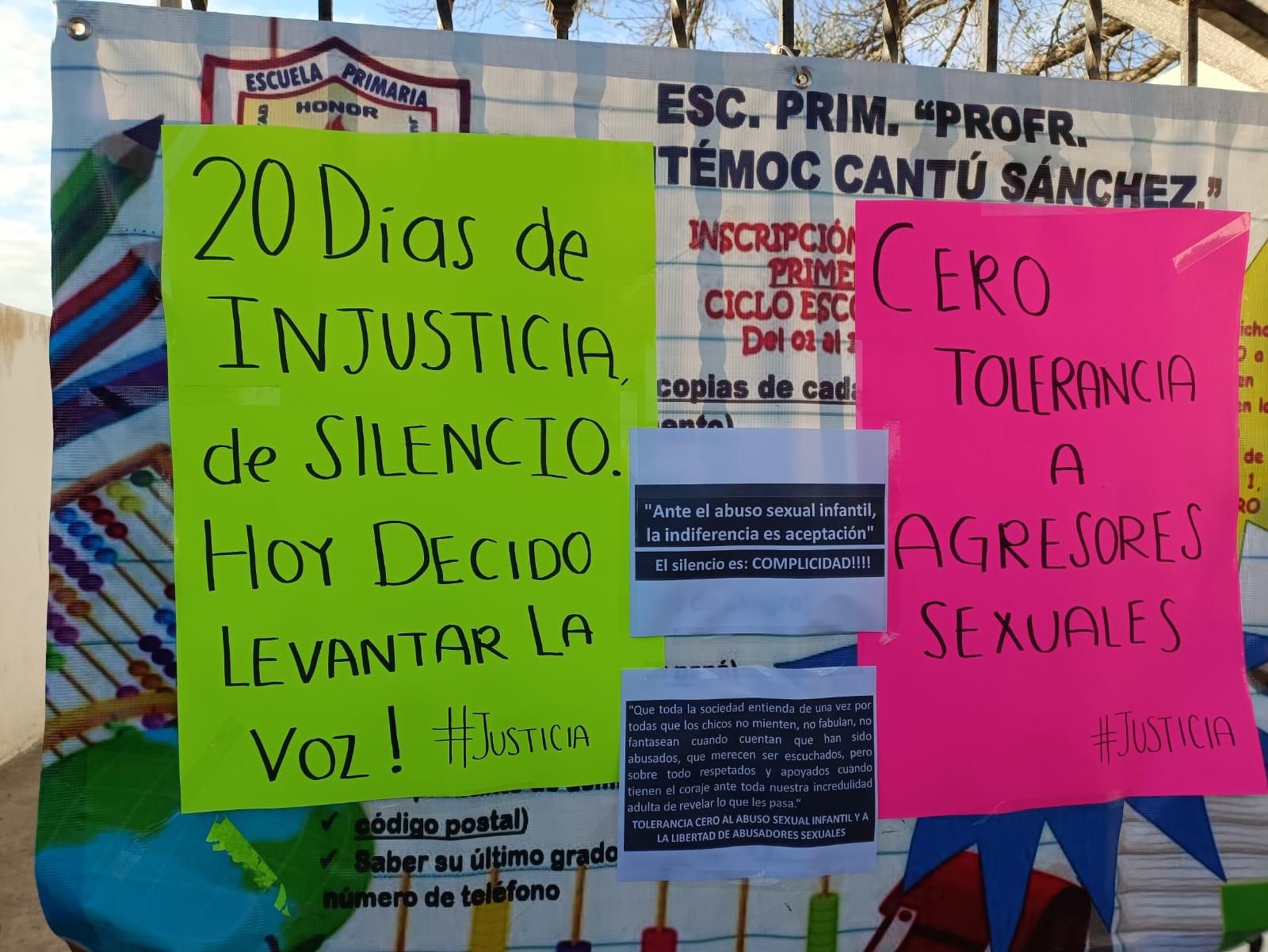 Cansada de que las autoridades educativas y de justica no investiguen los supuestos tocamientos que al parecer sufrió su niña en los baños de la escuela, la madre de familia Nancy Martinez Reyes ésta mañana de lunes tomo el edificio de la Escuela Primaria “Himno Nacional” en Matamoros, Tamaulipas y dijo que no quitará los candados del pórtico hasta que las autoridades educativas y Procuraduría General de Justicia en el Estado realmente investiguen qué sucedió en los sanitarios de este plantel.