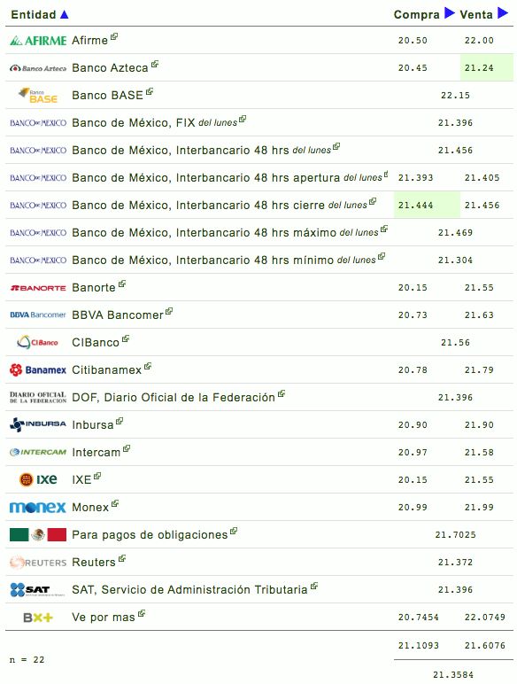 El tipo de cambio en ventanilla se encuentra en $20.73 a la venta en BBVA Bancomer, mientras que Banamex ofrece el dólar en $20.78 y Banorte $20.15