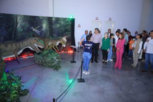“Con este tipo de exposiciones, no solo aprendemos físicamente de lo que pasó en un periodo de la tierra, sino que también, nos implica reflexionar acerca de estos tiempos y de las oportunidades que tenemos como especie y que nos debemos de hermanar para poder salir adelante”, expresó el gobernador en su mensaje, para luego hacer el primer recorrido por las cuatro salas interactivas donde se encuentran 17 dinosaurios robotizados.