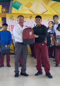 La entrega de las mochilas con sus paquetes de útiles escolares, dijo, se hizo al termino de los honores al lábaro patrio y ante la comunidad estudiantil, a fin de motivar a más alumnos para que pongan todo su esfuerzo en este semestre que acaba de comenzar.
