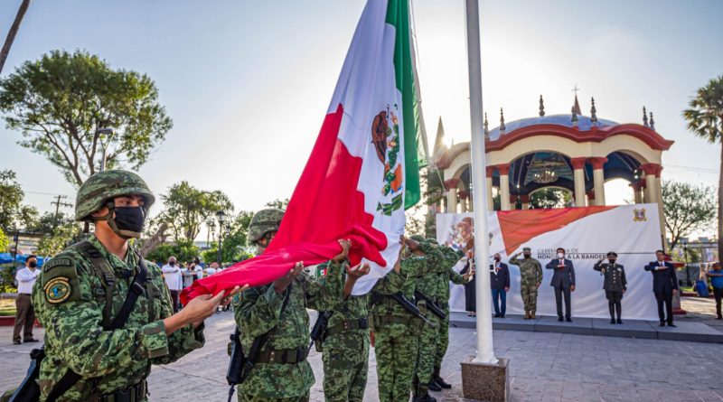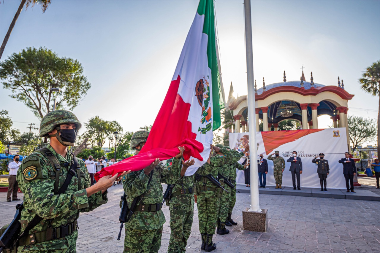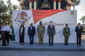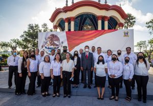 Este lunes el alcalde Mario Alberto López Hernández acompañado de autoridades militares y servidores públicos encabezó la ceremonia de honores, que se organiza el primer lunes de cada mes con el propósito de fomentar los valores cívicos entre los empleados municipales.