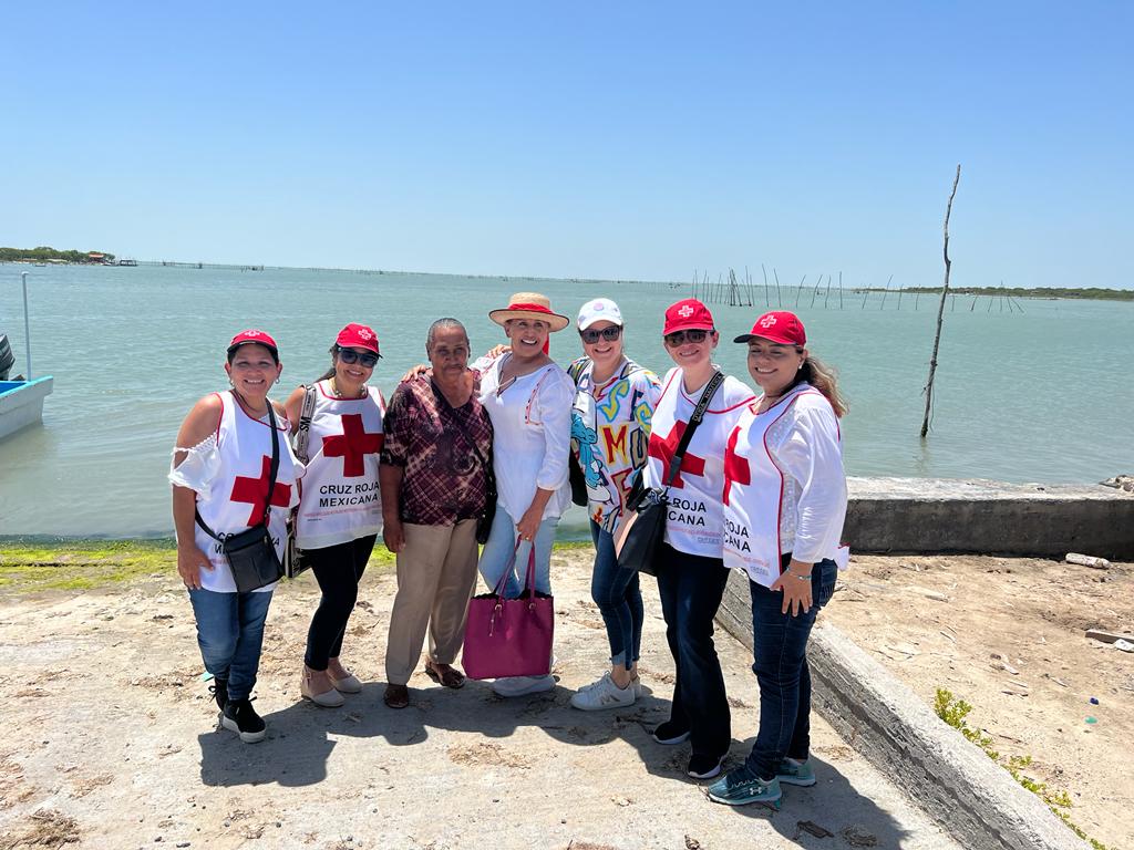 Presidente de la Cruz Roja de Matamoros y damas voluntarias entregan 200 mochilas en el Puerto El Mezquital e Islas de la Laguna Madre