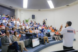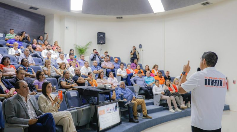 Frente a integrantes de la Cámara Nacional de la Industria de la Transformación (Canacintra), Roberto Lee, candidato naranja, a presidente Municipal, presentó su completo plan de gobierno.