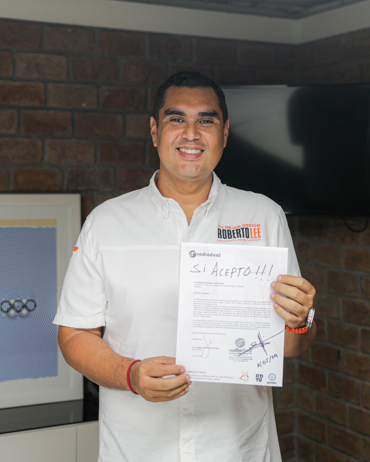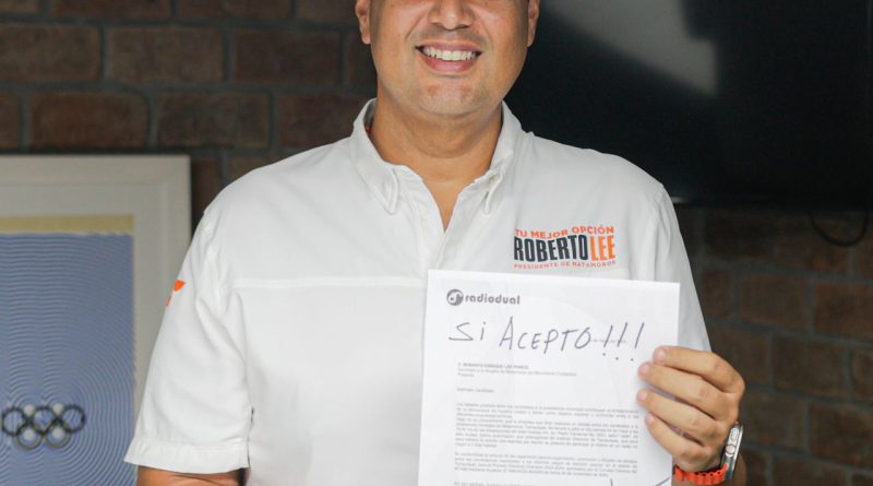 Roberto Lee, el candidato naranja por la alcaldía de Matamoros es la tercera ocasión que dice sí al debate, del Instituto Electoral de Tamaulipas y a dos estaciones de radio organizadoras, solo falta que los candidatos del PAN y Morena, también confirmen y que como Roberto Lee, sin miedo digan ¡Sí al debate!