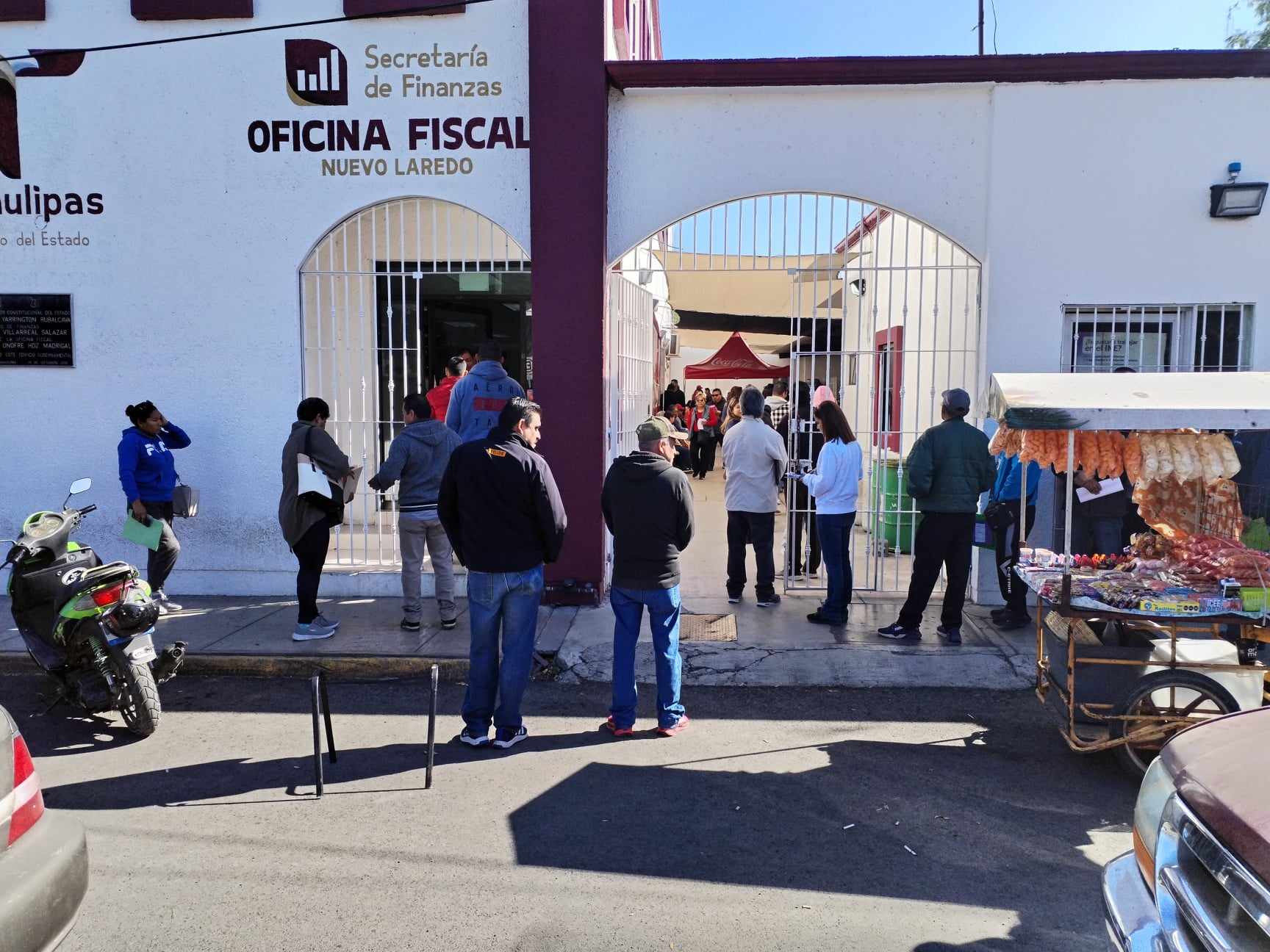La fila de contribuyentes de la Oficina Fiscal alcanzó hasta la calle Arteaga, debido a la alta demanda del holograma por el descuento del 30% y fallas en el sistema.