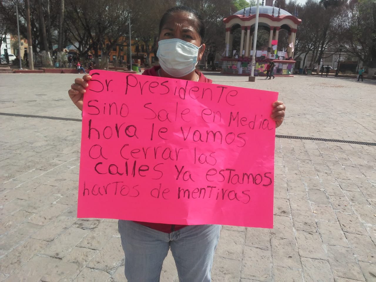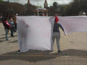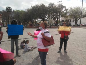 Se manifiestan personas con predios irregulares en la plaza principal, solicitando se las legalicen