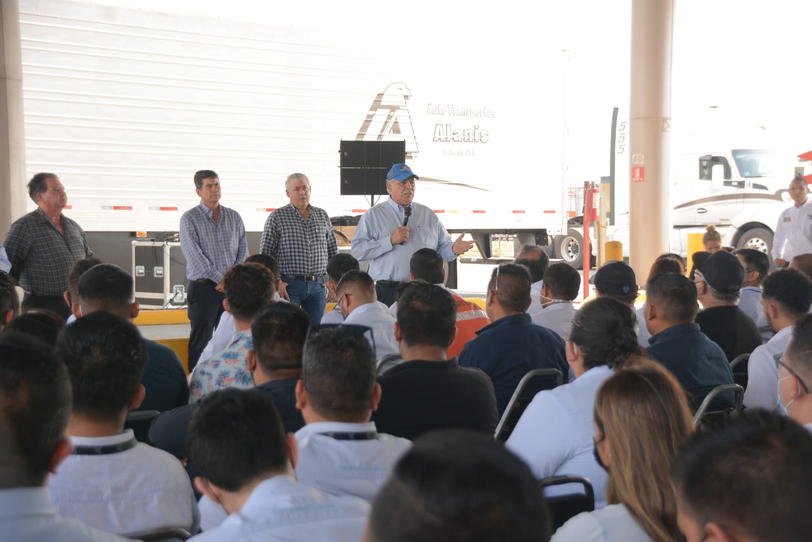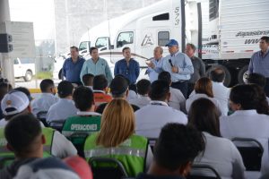Nuevo Laredo, Tam.- Dentro de su gira por este puerto fronterizo, el más importante del sector comercial en Latinoamérica, César Truko Verástegui sostuvo un encuentro con operadores y empresarios del autotransporte, rubro particularmente importante en esta frontera por su impacto en la vida económica.