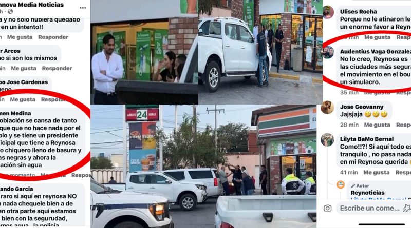 EL alcalde Carlos Peña y su respetable madre doña Maki Ortiz Domínguez, desde hace tiempo, le han venido causando enorme daño a las familias de Reynosa, porque “al pueblo, lo tienen sumido entre el estiércol, las aguas negras y la promiscuidad”, motivo por el cual mismos usuarios en redes señalan de manera directa que, “Reynosa, está convertida en una ciudad insegura y abandonada”. Otros de los “cibernautas” que, (no le dan crédito al atentado contra el padre del presiente municipal en plan de burla comentan: “no lo creo, Reynosa, es una de las ciudades mas seguras”, todo el movimiento en los bulevares “es un simulacro”.