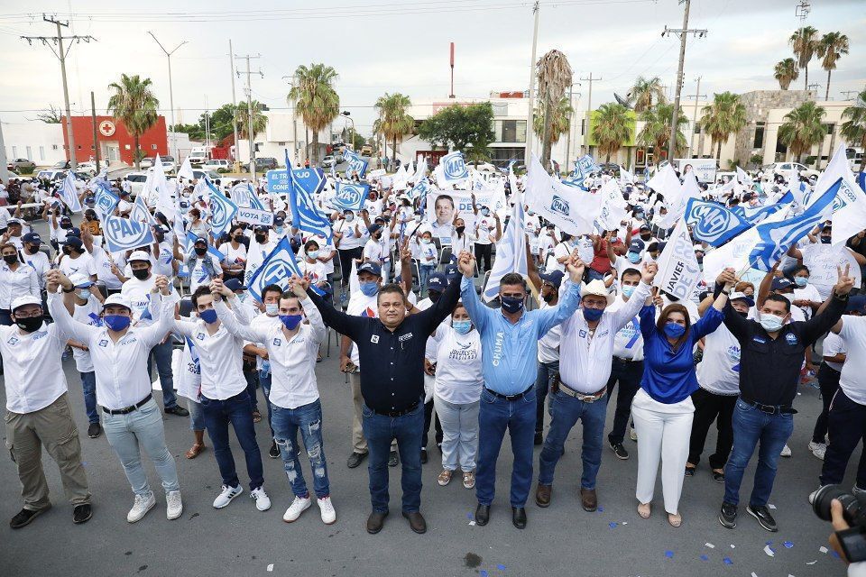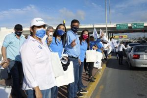 En su última tarde de campaña antes de las elecciones de este domingo, Jesús Ma. Moreno, Chuma, acompañado de su esposa Maribel Villarreal de Moreno y su hija Isabella, participaron en un pegoteo realizado en el Puente de la Muerte y en los cierres distritales de campaña de los candidatos Claudia Pacheco y Javier Garza de Coss.