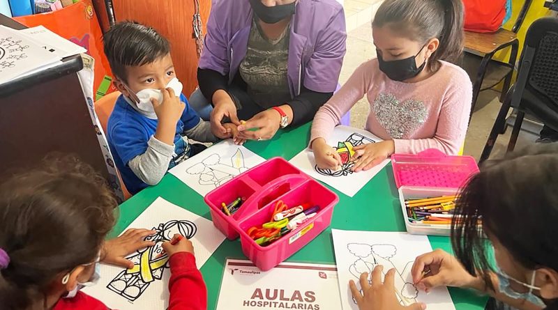 Ciudad Victoria, Tamaulipas.- Con la finalidad de que las niñas, niños y adolescentes que se encuentran hospitalizados no se retrasen en clases o suspendan su educación básica de manera definitiva, la Secretaría de Educación de Tamaulipas tiene en funciones las aulas hospitalarias para ofrecer una atención educativa, a través del uso de materiales didácticos y adecuaciones curriculares de manera lúdico-recreativa.