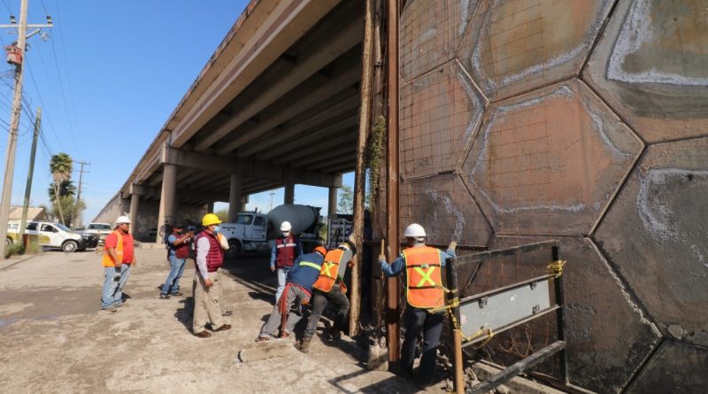 El Gobierno de Matamoros a través de la Secretaría de Desarrollo Urbano y Ecología trabaja en la rehabilitación de uno de los muros del puente Rigo Tovar, el cual sufrió daños a causa de las precipitaciones pluviales que se han registrado en esta frontera, informó Marco Antonio Hernández Acosta, quien destacó que el acceso elevado no corre riesgo alguno de colapso.