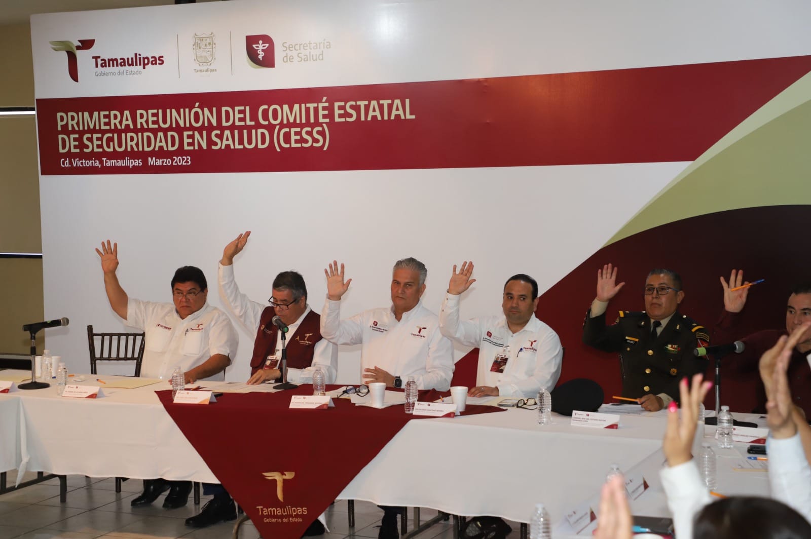 En la primera reunión del Comité Estatal de Seguridad en Salud, se contó con la presencia del subsecretario de Salud Pública, José Luis Garza Ruiz; Eduardo Martínez Bermea, subsecretario de Atención Médica; Gabriel de la Garza Garza, subsecretario de Planeación y Calidad; Alberto Moctezuma Castillo, comisionado estatal para la Protección Contra Riesgos Sanitarios (COEPRIS); el representante de la 48/a. Zona Militar, así como los representantes del IMSS, ISSSTE y Cruz Roja entre otras dependencias.