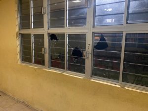 “Porque los vándalos nos descompusieron la bomba que surte agua a los tinacos, un multiesplit, varias cámaras de videovigilancia, rompieron los cristales de varias ventanas, hicieron grafitis y demás destrozos en nuestro plantel”, expresó