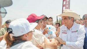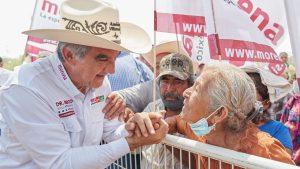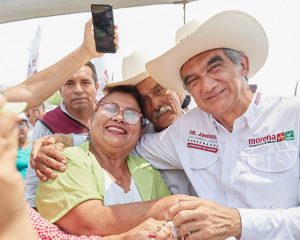 En la orilla de la carretera ya lo esperaban un gran grupo de jóvenes entusiastas que alzaban sus banderillas y coreaban ¡gobernador!, ¡gobernador! para luego trasladarse al campo de fútbol dónde fue recibido por mujeres y hombres que se comprometieron a votar por Américo Villarreal, el próximo 5 de junio.